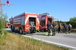 Bereits auf halber Strecke zwischen der 50er Beschränkung und dem Gemeindegebiet Haschendorf war eine größere Wald- bzw. Wiesenfläche in Brand geraten. Gemeinsam mit dem Feuerwehren Haschendorf, Siegersdorf, Felixdorf, Ebenfurth und Wiener Neustadt wurde die Brandbekämpfung aufgenommen.