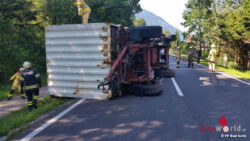 Oö: Umgestürzter Lkw-Anhänger auf der B 145 bei Langwies