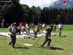 In der brütenden Hitze mussten die Bewerbsgruppen möglichst schnell und fehlerfrei eine Wasserversorgung aufbauen, und mit beiden Angriffsrohren die Ziele umspritzen. Im Vergleich zum „trockenen Angriff“ – hier fanden die Bewerbe schon im Juni statt – steht hier also genaues und sauberes Arbeiten noch mehr im Vordergrund.