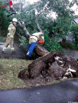 Alle Hände voll zu tun hatte die FF Frastanz um überflutete Keller auszupumpen, umgestürzte Bäume und große Äste zu entfernen und diverse Sicherungsmaßnahmen durchzuführen. An diesem Abend und am darauffolgenden Donnerstag wurde die Feuerwehr zu ca. 40 Einsätzen gerufen.
