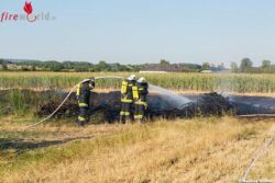 MAUTERN (NÖ): Kaum waren die Einsatzkräfte am Mittwoch den 22. Juli 2015, vom Einsatz des Verkehrsunfalls auf der B33 eingerückt, ging ein Notruf bei der Bezirksalarmzentrale Krems ein, dass ein Feld in Flammen steht. Der Diensthabende alarmierte die Feuerwehr Mautern mittels Sirene zu einem Flurbrand.