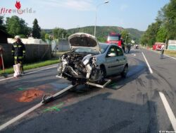 Im Bereich der Kreuzung kam es zu einem Frontalcrash zweier Pkws. Beide Fahrzeuge waren dermaßen beschädigt, dass ein Weiterkommen bzw. Entfernen von der Fahrbahn nicht möglich war. Die im FF Haus befindlichen Kräfte rückten unverzüglich mit Rüstfahrzeug und der Abschleppachse zum Einsatz aus. Weitere Kräfte kamen mit dem Wechselladefahrzeug und dem Bus Mautern zum Einsatz nach.