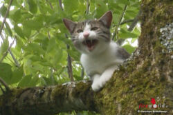 GRÖBMING (STMK): Zu einer Tierrettung musste die FF Gröbming am späten Samstag Nachmittag, 25. Juli 2015, ausrücken. Eine Spaziergängerin mit nahm im Ortsteil Hofmanning lautes Katzengejaule wahr und lokalisierte ein junges Kätzchen auf einem großen Baum am Waldrand.