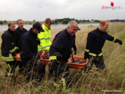 Deutschland: Bombenbergung mit Schleifkorbtrage in Düsseldorf