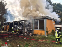 Bei Ausbruch des Feuers befanden sich drei von ihnen vor Ort; alle anderen waren auf Heimaturlaub. Verletzt wurde niemand. Die Männer saßen vor der Unterkunft beim Abendbrot, als gegen 19.00 Uhr plötzlich die Rauchmelder im Gebäude auslösten und Minuten später Flammen aus dem Pavillon loderten. Unverzüglich alarmierten sie über Handy die Feuerwehr.