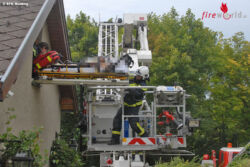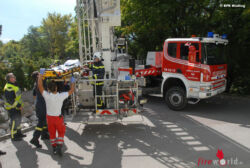 Nachdem die Notärztin die Frau stabilisiert hatte, konnte diese über ein kleines Fenster mit der Teleskopmastbühne abtransportiert und anschließend zur weiteren Betreuung ins Krankenhaus gebracht werden. Der Einsatz für die Freiwilligen Feuerwehren dauerte eine Stunde.