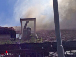 Von einem Passanten wurde der Rauchaustritt im Firstbereich des Ziegeldaches bemerkt und die Feuerwehr alarmiert. Von der Feuerwehr wurde eine Löschleitung im Außenangriff zur Bekämpfung des offenen Dachbrandes an der Gebäuderückseite eingesetzt. Zeitgleich wurde eine zweite Löschleitung unter Atemschutz in den Dachboden vorgetragen und umgehend mit der Brandbekämpfung im Innenangriff begonnen.