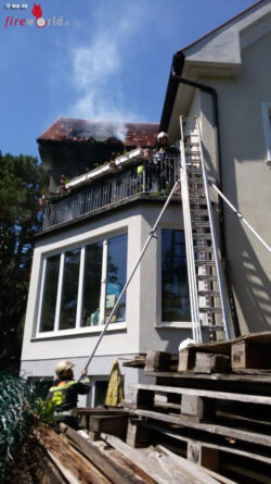 WIEN, 13. BEZIRK: Gegen 13.40 Uhr war am 26. Juli 2015 im Wiener Preleuthnersteig im 13. Bezirk in einem teilweise in Umbau befindlichen Einfamilienhaus ein Brand ausgebrochen, der auf Teile der Dachkonstruktion übergegriffen hatte.