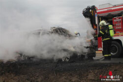 Die Feuerwehr Wiener Neustadt rückte kurz nach dem ersten Notruf mit mehreren Fahrzeugen zum Einsatzort aus. Vor Ort eingetroffen stand ein Pkw in Vollbrand. Dem Lenker aus Walpersbach gelang es noch, seinen Anhänger abzukuppeln und einige Wertsachen aus dem Fahrzeug zu holen, bevor das Fahrzeug, ein koreanischer Ssangyong, in Flammen aufging.