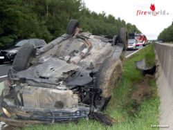 Aus ungeklärter Ursache waren ein Pkw und ein Sattelzug kollidiert. Der Sattelzug schleifte den Pkw ca. 100 Meter zwischen ihm und den Betonleitwänden mit. Schließlich kam der Pkw am Dach auf der ersten Fahrspur zum Liegen. Der Lkw kam ca. 50 Meter danach zum Stehen. Die Pkw- Lenkerin erlitt Verletzungen unbestimmten Grades und wurde von Roten Kreuz ins Krankenhaus Oberwart eingeliefert.