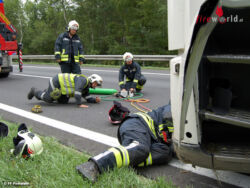 Die FeuerwehrPinkafeld sicherte die Unfallstelle ab, stellte den Brandschutz sicher, band ausgelaufene Betriebsmittel und führte mittels SRF und WLF die Fahrzeugbergung durch. Danach wurde der Lkw mittels Hebekissen angehoben und der bei dem Crash zerstörte Reifen gewechselt. Danach wurde er von einem privaten Abschleppunternehmen von der Autobahn geschleppt. Nach ca. zwei Stunden konnte wieder eingerückt werden. Die A2 war für die Dauer der Bergearbeiten nur erschwert passierbar. Die Stadtfeuerwehr Pinkafeld bedankt sich beim Roten Kreuz sowie der Exekutive und der LSZ für die gute Zusammenarbeit.