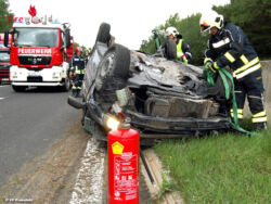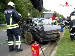 Die Feuerwehr Pinkafeld rückte mit einem SRF (schweres Rüstfahrzeug), einem RLF (Rüstlöschfahrzeug), einem WLF (Wechselladerfahrzeug), einem KDO (Kommandofahrzeug) und 20 Mann zum Einsatz aus. An der Einsatzstelle konnte schnell Entwarnung gegeben werden. Entgegen der Alarmmeldung war keine Person im Fahrzeug eingeklemmt.