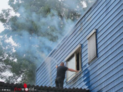 Beim Eintreffen der Feuerwehr war bereits eine starke Rauchentwicklung sichtbar. In der Folge schlugen auch Flammen aus dem Dach, der Brand breitete sich rasch über die hinterlüftete Blechfassade aus.