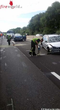 BRUCK AN DER LEITHA (NÖ): Am Mittwoch, den 29. Juli 2015 gegen 16,25 Uhr wurde die Feuerwehr Bruck an der Leitha zu einem Verkehrsunfall mit acht beteiligten Fahrzeugen auf der A4 Richtungsfahrbahn Ungarn Höhe Bruck West alarmiert.