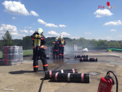 Das Feuer, das noch mit Feuerlöschern einzudämmen versucht wurde, griff allerdings rasch auf Teile des Gebäudes über, sodass via Notruf die Feuerwehr verständigt wurde. Die Betriebsfeuerwehr der Fa. Leitz war trotz Betriebsurlaubs in wenigen Minuten zur Stelle und wurde von den Feuerwehren Riedau und Dorf unterstützt.