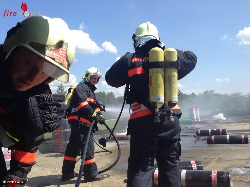 Das Feuer, das noch mit Feuerlöschern einzudämmen versucht wurde, griff allerdings rasch auf Teile des Gebäudes über, sodass via Notruf die Feuerwehr verständigt wurde. Die Betriebsfeuerwehr der Fa. Leitz war trotz Betriebsurlaubs in wenigen Minuten zur Stelle und wurde von den Feuerwehren Riedau und Dorf unterstützt.