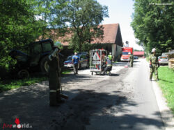 Zwei Traktoren waren seitlich kollidiert. Dabei brach die Vorderachse bei einem der beiden Zugfahrzeuge und es trat Getriebeöl aus. Zunächst wurde die Unfallstelle abgesichert. Anschließend wurden die Betriebsstoffe gebunden und die Aufräumarbeiten unterstützt. Durch den Unfall wurde niemand verletzt. Die Feuerwehr Mauerkirchen rückte mit 22 Mitgliedern zum Einsatzort aus. Der Einsatz konnte um 15:15 Uhr beendet werden.