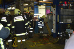Unverzüglich rückte die Feuerwehr mit 34 Mann und fünf Fahrzeugen zum Einsatzort aus. Vor Ort stellte sich dem Einsatzleiter ABI Veroner folgende Lage: „Ein ca. 25-Jähriger war damit beschäftigt eine Trommel mit Kleinteile zu bestücken – aus bisher ungeklärter Ursache wurde der Arbeiter massiv unter der Maschine eingeklemmt“.