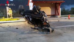 Auf der B165 Gerlos Straße – Höhe Ortsteil "Grubing" – ist ein in Richtung Krimml fahrender Pkw von der Straße abgekommen und auf die abschüssig liegende L254 Hollersbacher Landesstraße gestürzt. Im Bereich der dort befindlichen Zug-/Bushaltestelle kam das Fahrzeug auf dem Dach zum Stillstand.