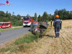 SIEGHARTSREITH (NÖ): Am Samstag, den 1. August 2015, wurden die Feuerwehren Sieghartsreith und Horn zur Bergung eines Traktors zwischen Sieghartsreith und Harth alarmiert. Ein Traktor war mit einem Grubber in den Straßengraben gekippt.