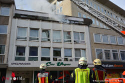 MÜHLHEIM AN DER RUHR (DEUTSCHLAND): Um 18:10 Uhr gingen am 2. August 2015 mehrere Notrufe auf der Feuerwehr Leitstelle ein. Alle Anrufer berichteten über ein Feuer im dritten Obergeschoss eines Wohn- und Geschäftshauses auf der Leineweberstraße gegenüber dem Berliner Platz. Schon auf der Anfahrt zur Einsatzstelle waren Flammen und Rauch erkennbar.