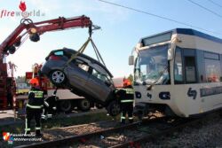 Gemeinsam mit den anwesenden Rettungskräften wurde nach Entfernung der Rücksitzbank die Person mittels Schaufeltrage aus dem Fahrzeug befreit und der Rettung übergeben. Nach der Unfallaufnahme durch die Polizei wurde umgehend mit den Aufräumarbeiten begonnen und der Pkw mittels Kran und Seilwinde von der Kupplungseinrichtung des Triebwagens getrennt, verladen und in weiter Folge verkehrssicher abgestellt.
