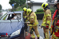 Bei dem Unfall wurde die Fahrerin des Pkw in ihrem Fahrzeug eingeklemmt. Nach einer medizinischen Erstversorgung durch den Rettungsdienst und den Notarzt wurde die eingeklemmten Personen mit hydraulischem Rettungswerkzeug aus ihrer Zwangslage befreit und anschließend zur weiteren Behandlung in ein Krankenhaus nach Duisburg transportiert.