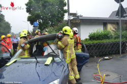 Deutschland: Feuerwehr öffnet Autodach zur Personenrettung nach Unfall in Ratingen