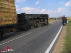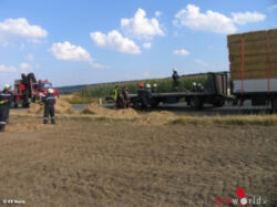 ALTENBURG (NÖ): Am Dienstag, den 4. August 2015, wurden die Feuerwehren Fuglau, Altenburg und Horn um 16:13 Uhr zum Einsatz alarmiert. Ein mit Strohballen beladener Anhänger war auf der LB 38 zwischen Altenburg und Fuglau umgestürzt.