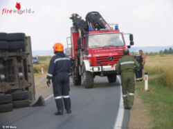 Nö: Bergung eines Lkw-Anhängers mit Stroh auf der LB 38 bei Altenburg