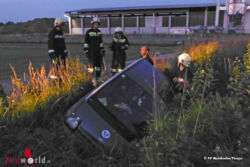WAIDHOFEN/THAYA (NÖ): Während der ersten Vorbereitungsarbeiten für den 38. Stadtkirtag wurde die Freiw. Feuerwehr Waidhofen/Thaya um 20:48 Uhr des 4. August 2015 zu einer Fahrzeugbergung im Bereich des Fernheizwerks neben der LB36 alarmiert.