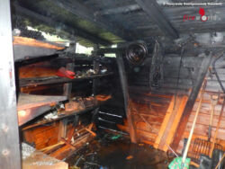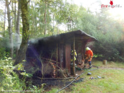 HANSTEDT (DEUTSCHLAND): Ein in Brand geratener Gerätschuppen erforderte am Morgen des Donnerstages, 6. August 2015, den Einsatz der Feuerwehren aus Wesel und Undeloh. Während die Kräfte aus Undeloh eine Wasserversorgung von einem nahegelegenen Hydranten herstellten, brachte die Besatzung des Weseler Tanklöschfahrzeuges das Feuer durch den Einsatz der Schnellangriffsvorrichtung bereits nach wenigen Minuten unter Kontrolle und konnte diesen schließlich ganz löschen.
