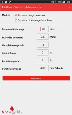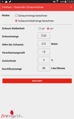 Feuerwehr-Schaumrechner für Android – Kostenlose App von Feuerwehrmann für Feuerwehren