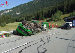 Schweiz: Lkw-Zug nach Schleudermanöver umgestürzt: Lenker eingeklemmt und getötet