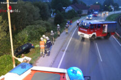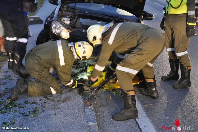 Der Lenker und sein Beifahrer konnten sich selber aus dem Fahrzeug befreien und die Einsatzkräfte alarmieren. In Kürzester Zeit traf die Feuerwehr ein und sicherte die Einsatzstelle ab und begannen sich einen Zugang mit der Motorsäge durch die Bachweiden zum Pkw zu schaffen. Das RK-Traisental versorgte den Fahrer der unbestimmten Grades verletzt wurde. Mittels Seilwinde wurde das Fahrzeug von der Böschung auf die Straße gezogen, die Batterie abgeklemmt und die ausgelaufenen Betriebsmittel wurden aufgefangen. Anschließend wurde das Fahrzeug sicher auf einen Parkplatz abgestellt.