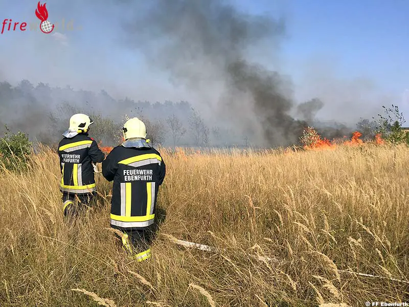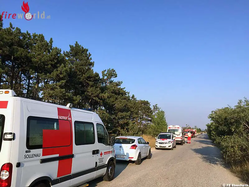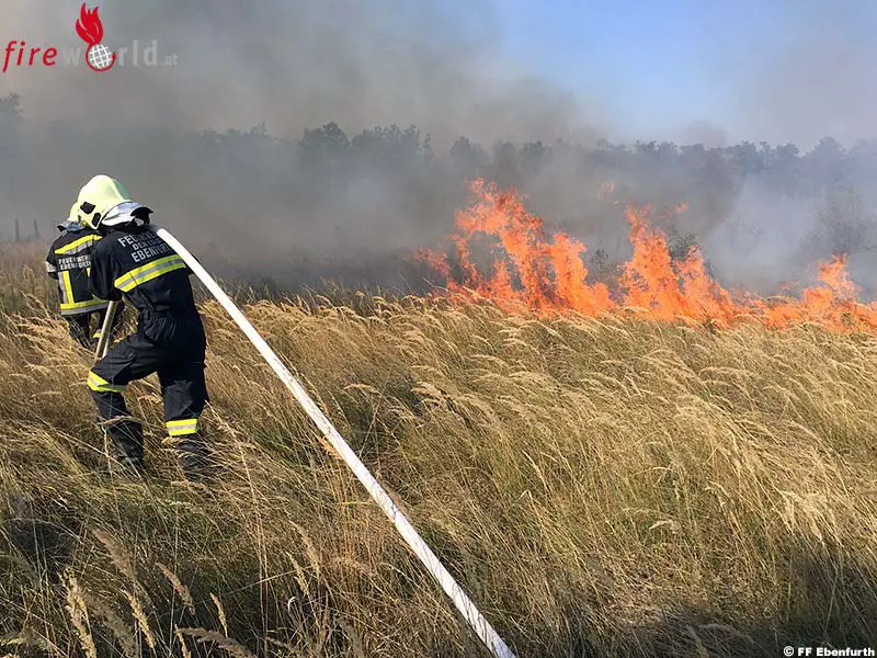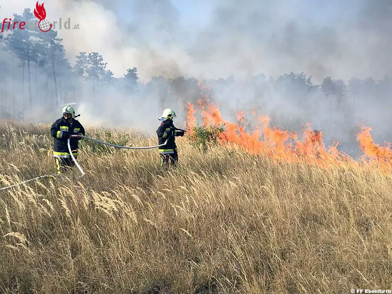 HASCHENDORF (NÖ): Am 7. August 2015 um 16.34 Uhr wurden die Feuerwehren Haschendorf und Ebenfurth zu einem Flurbrand bei der Zufahrtsstraße zum Gelände der Firma Pittel+Brausewetter, beim Kreisverkehr LH159-B17, alarmiert.