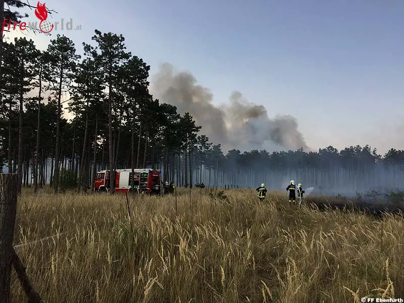 Schon bei der Anfahrt bemerkte der Einsatzleiter im Tank 2-Haschendorf (TLF-A 2000), dass es sich nicht mehr um einen Flurbrand handelt. Infolge der anhaltenden Hitzewelle und Trockenheit bewirkten mit Hilfe des Windes eine sehr rasche Ausbreitung des Feuers in den Wald hinein. Durch das neue Lagebild wurde vom Einsatzleiter die Feuerwehren Sollenau, Ober- und Untereggendorf, Zillingdorf Markt sowie Großtanklöschfahrzeuge der Feuerwehr Wiener Neustadt, zum Wald- und Flurbrand im Sektor F, nachgefordert.