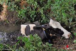 Deutschland: Feuerwehr Bedburg-Hau rettet in Wassergraben einsinkende Kuh