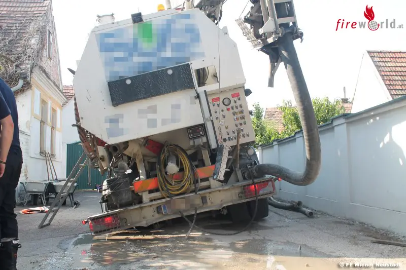Bgld: FF Wiener Neustadt bei Bergung eines eingesackten Spülwagens in Baumgarten