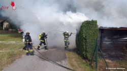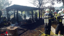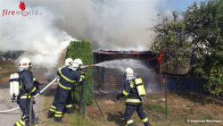 ENGERWITZDORF (OÖ): Am Sonntagvormittag, 9. August 2015, brach in der Ortschaft Steinreith (Gemeinde Engerwitzdorf) in einer Gartenhütte ein Feuer aus. Die Besitzer wollten das Feuer noch mit eine Gartenschlauch bekämpfen, die Ausbreitung war jedoch zu schnell. Die Freiwilligen Feuerwehren Schweinbach, Schmiedgassen und Treffling wurden in der Alarmstufe 1 alarmiert.