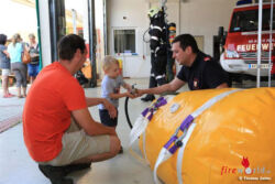 Neben den verschiedenen Fahrzeugen, Booten, Tauchgeräten wartete ein besonderes Highlight für die Besucher. Strahlende Gesichter konnte man beim Tanklöschfahrzeug schon von weitem sehen, als nicht nur die kleinen Gäste die Arbeit als Feuerwehrmann unter anderem an den verschiedenen Löschgeräten hautnah ausprobieren konnten.