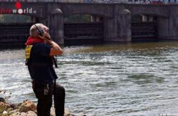 MÜNCHEN (BAYERN): Dramatische Szenen spielten sich am Nachmittag des 11. August 2015 an der Isar unterhalb der Wehranlage Oberföhrig ab. Ein 18-Jähriger war in der Nähe eines Wehrauslasses ins Wasser gesprungen und kurz darauf untergegangen. Passanten alarmierten die Berufsfeuerwehr München.