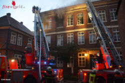 STADE (DEUTSCHLAND): Gegen 19:40 Uhr kam es am 11. August 2015 in der Stader Altstadt zum Ausbruch eines Feuers in einer Wohnung eines Hauses in der Straße Cosmaekirchhof. Nach dem bisherigen Stand der Ermittlungen hatte eine Bewohnerin in der Küche ihrer Wohnung im 2. Obergeschoß des Gebäudes mit sieben Wohnungen und einem Büro Essen zubereitet und dabei Öl in eine heiße Pfanne gegossen.
