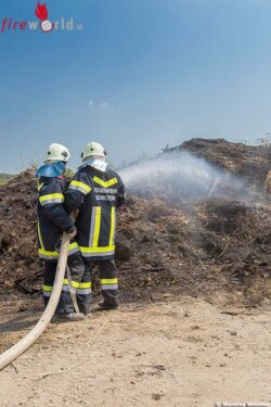 Mit einem B-Rohr und zwei C-Rohren wurden der Brand anfänglich unter umluftunabhängigen Atemschutz bekämpft. Nachdem der Brand niedergeschlagen wurde konnten die Nachlöscharbeiten ohne Atemschutz fortgesetzt werden. Bei hochsommerlichen Temperaturen von über 35 Grad Celsius stellte der Einsatz eine enorme Belastung für die eingesetzten Feuerwehrmänner dar. Bereits in der Anfangsphase des Einsatzes wurde an der Einsatzstelle ausreichend Trinkwasser für die eingesetzten Feuerwehrkräfte bereitgestellt.
