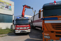 KORNEUBURG (NÖ): Am 13. August gegen 13:20 Uhr wurde die Feuerwehr zu einer „Technischen Hilfeleistung“ in die Industriestraße gerufen. Ein Lkw-Zug hatte beim Rangieren einen Telefonmasten touchiert, sodass zwei an der betroffenen Leitung umzustürzen drohten.
