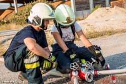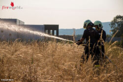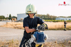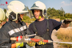 Danach ging es raus aufs Flugfeld wo von den Auszubildenden ein Löschangriff aufgebaut wurde. Unterstützt von den beiden Jungmaschinisten wurden zwei C-Rohre vorgenommen und eine Wasserversorgung zum Tanklöschfahrzeug aufgebaut.