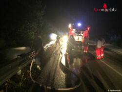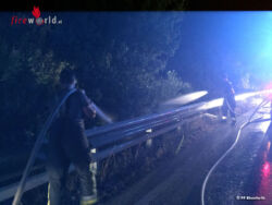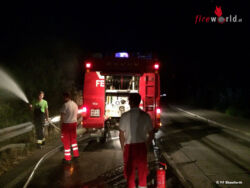 Das RK-Team hatte die Einsatzstelle abgesichert und mit einem am RTW mitgeführten Feuerlöscher die Brandbekämpfung begonnen. Dank des raschen Handelns der Sanitäter konnte ein Übergreifen auf dichtes Gebüsch und Bäume auf der Böschung verhindert werden. Herzlichen Dank an die RTW-Besatzung! Beim Eintreffen von Tank 1 Ebenfurth wurde mittels zwei C-Rohren der Brand endgültig abgelöscht.