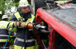 Zur Befreiung des Paares aus dem Wrack setzte die Feuerwehr eine hydraulische Rettungsschere ein. Die Einsatzkräfte entfernten die B-Säule um die beiden Insassen möglichst schonend retten zu können. Die Ehefrau hatte sich nur leichte Blessuren zugezogen, sie kam aber zur Kontrolle in ein Krankenhaus. Der Fahrer erlitt mittelschwere Verletzungen und wurde mit dem Notarzt in eine Klinik transportiert. Am Golf entstand Totalschaden und am Audi ein nicht unerheblicher Sachschaden.