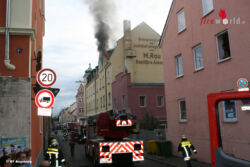 AUGSBURG (BAYERN): Gegen 18:00 Uhr des 16. August 2015 wurde die Haupt- und Südwache der Berufsfeuerwehr Augsburg zusammen mit der Freiwilligen Feuerwehr Oberhausen und Kriegshaber zu einem Wohnungsbrand in die Schißlerstraße in Oberhausen gerufen. Beim Eintreffen der Einsatzkräfte brannten mehrere Zimmer der zweigeschossigen Dachwohnung in voller Ausdehnung.
