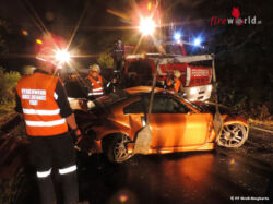 Ein Pkw Lenker hatte aus unbekannter Ursache die Herrschaft über sein Fahrzeug verloren. Der stark beschädigte Pkw kam quer zur Fahrbahn zum stehen, es war nur mehr eine Bergung mit Kran möglich. Die Unfallstelle wurde mit dem Lichtmast des KLF ausgeleuchtet. Nach der Unfallaufnahme durch die Polizei wurde das Unfallfahrzeug mit dem Kran von Last Groß Siegharts verladen und gesichert abgestellt.